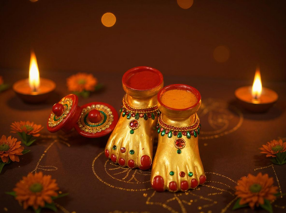 • Laxmi Charan Diyas – Beautifully crafted diyas to welcome divine blessings into your home.